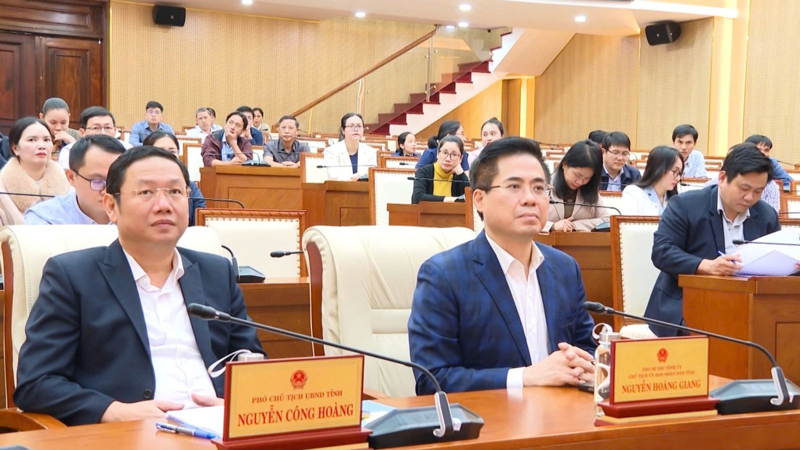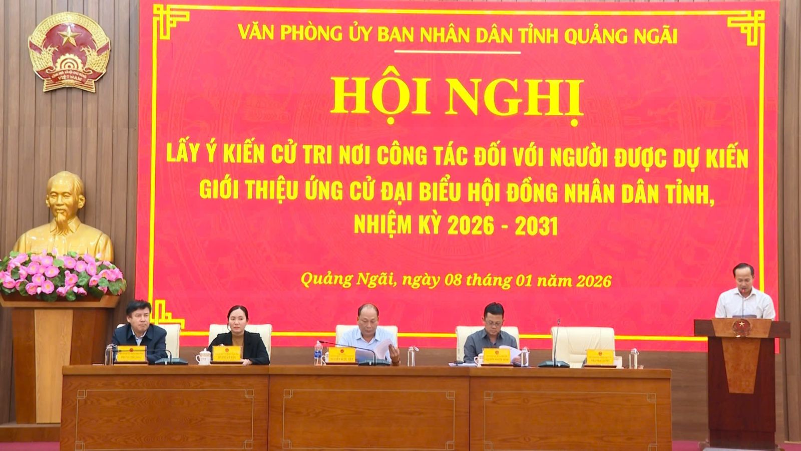 Chiều 8/01, Văn phòng UBND tỉnh tổ chức Hội nghị lấy ý kiến cử tri nơi công tác đối với người được dự kiến giới thiệu ứng cử đại biểu HĐND tỉnh Quảng Ngãi khóa XIV, nhiệm kỳ 2026 – 2031. Tham dự Hội nghị có Phó Bí thư Tỉnh ủy, Chủ tịch UBND tỉnh Nguyễn Hoàng Giang và Phó Chủ tịch UBND tỉnh Nguyễn Công Hoàng; các đồng chí lãnh đạo Văn phòng và toàn thể công chức, viên chức, người lao động Văn phòng UBND tỉnh.